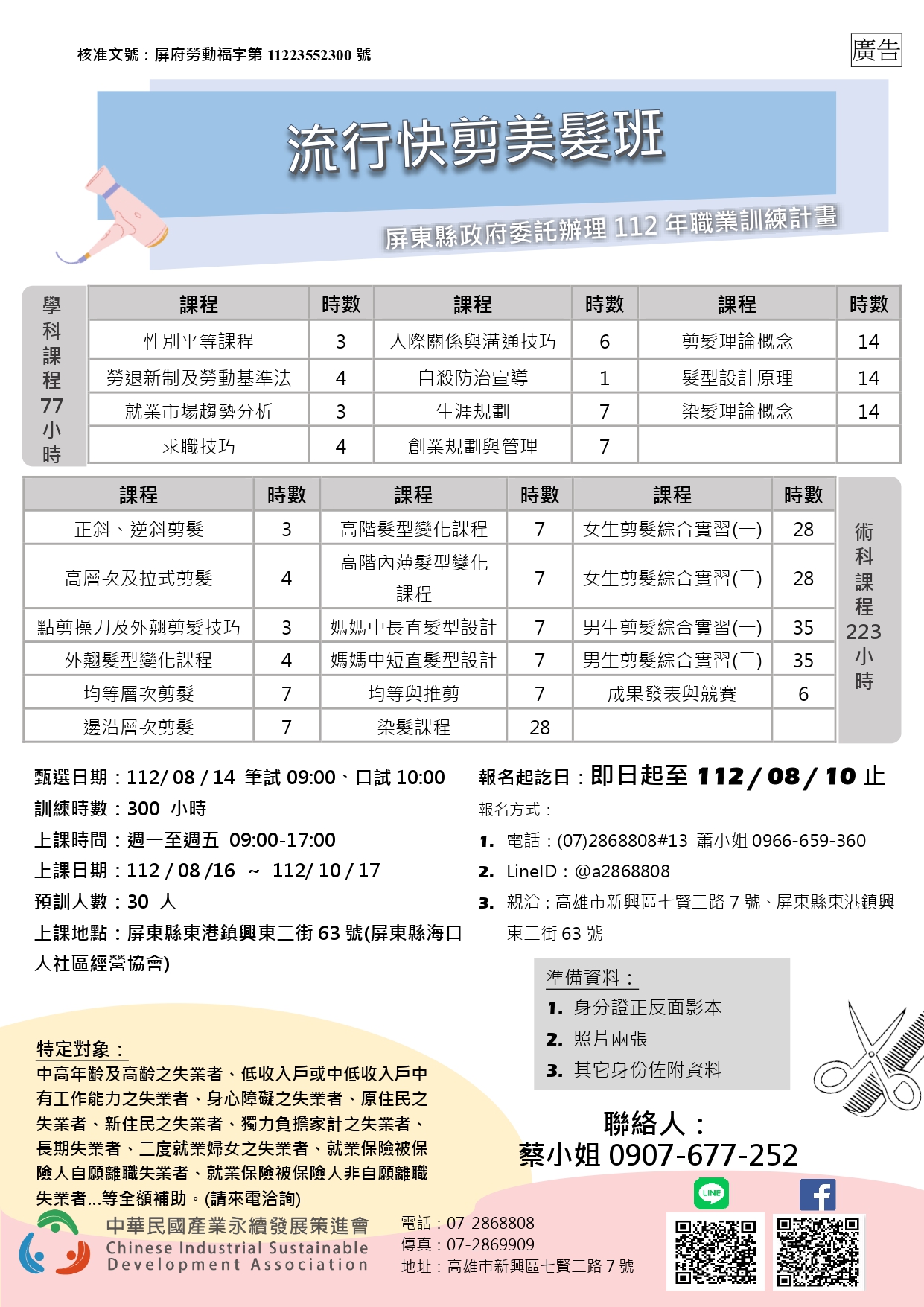 112年度-屏東-流行快剪美髮班