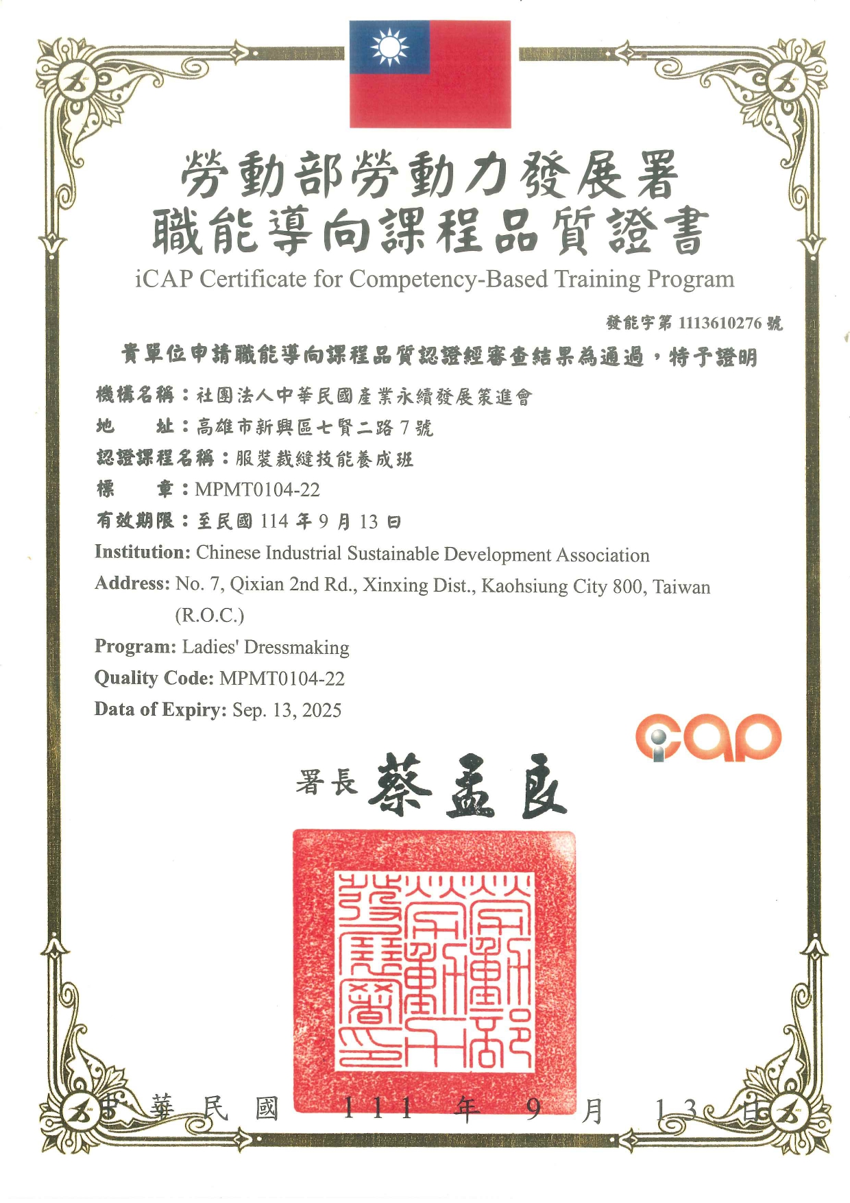 勞動部iCAP職能導向課程-服裝裁縫技能養成班