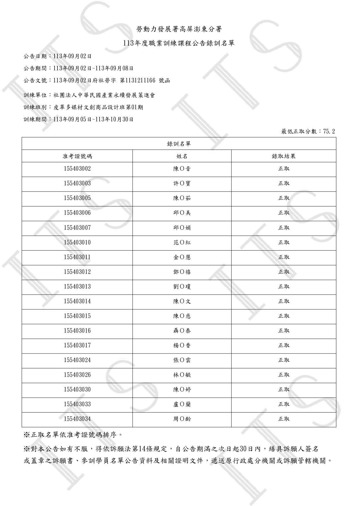 113/09/05(四)上午07:50前報到參訓。